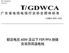 團(tuán)體標(biāo)準(zhǔn)《額定電壓600V及以下FEP/PFA絕緣安裝用高溫電線》(T/GDWCA 0099—2022)